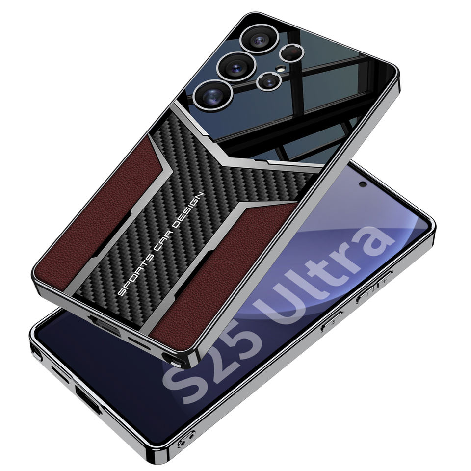 GKK Electroplated Leather Business PC Material Shockproof Phone Case for S23/S24/S25 Ultra Featuring Unique Wooden Design