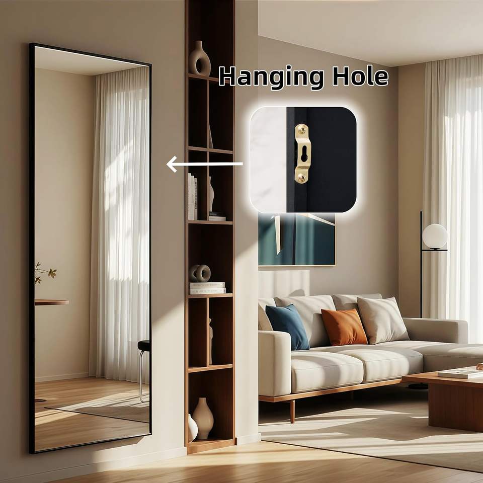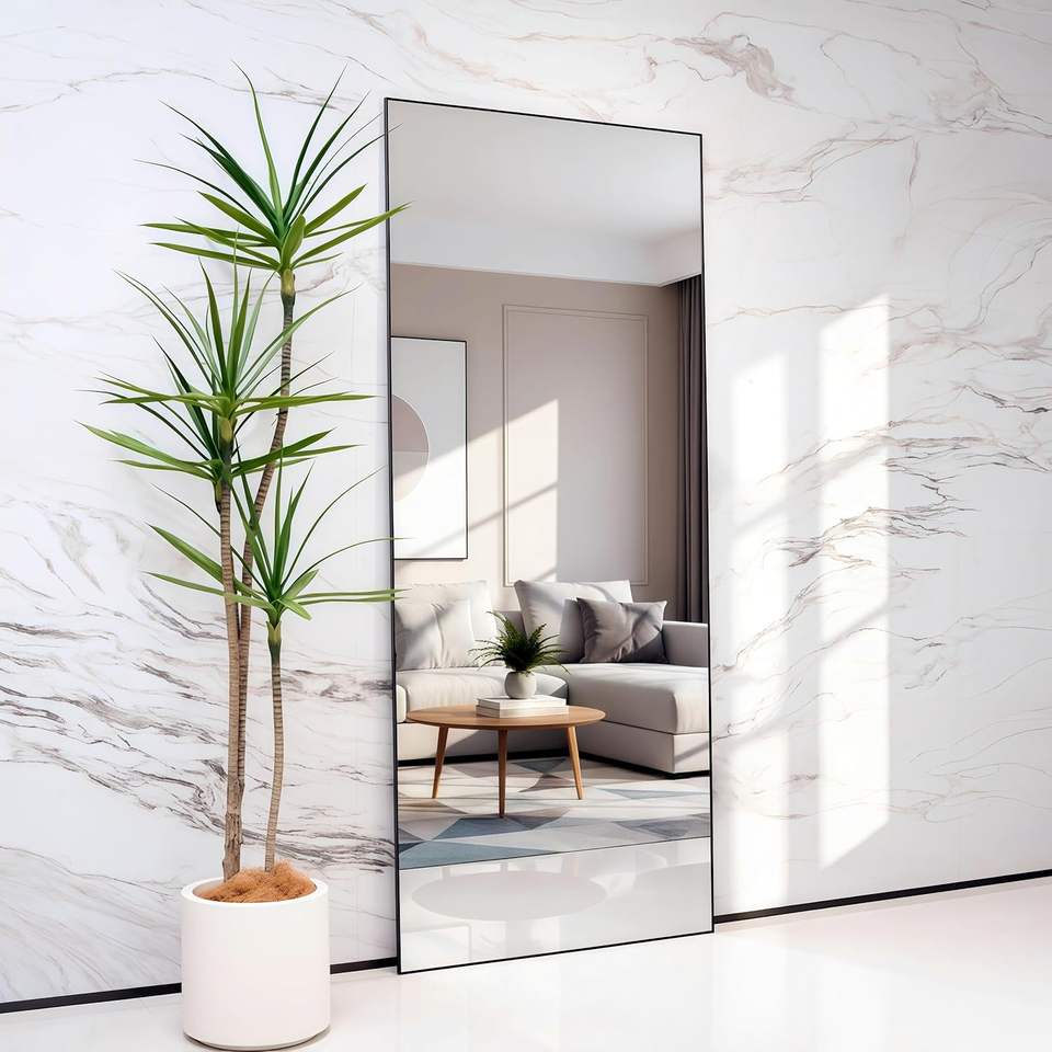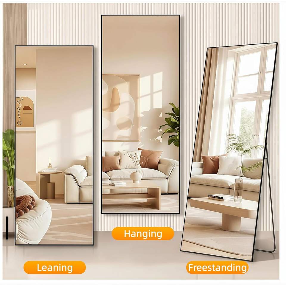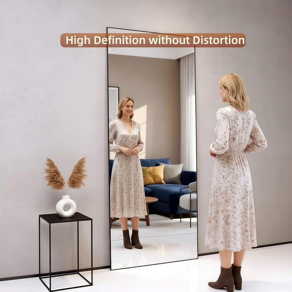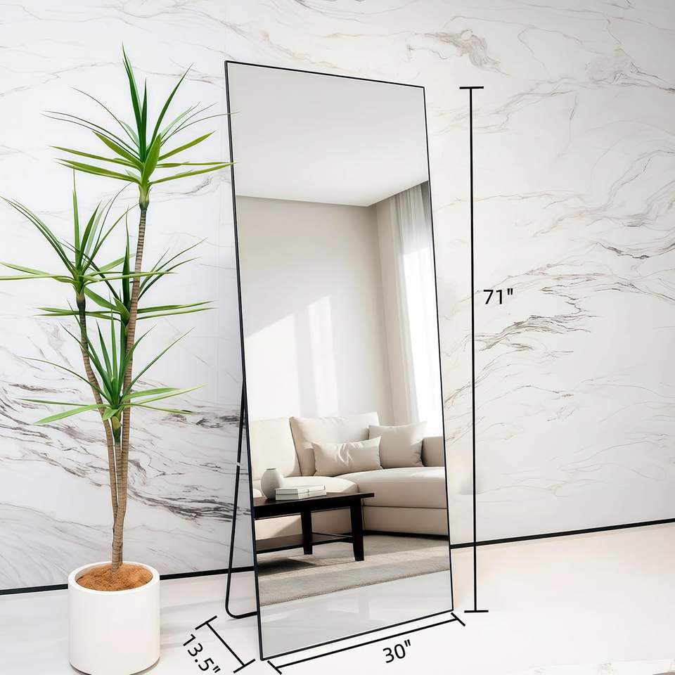 GKMZCGT Full Length Mirror 71x30 Inch Rectangular Aluminum Alloy Frame Wall Mountable Tempered Glass Minimalist Design