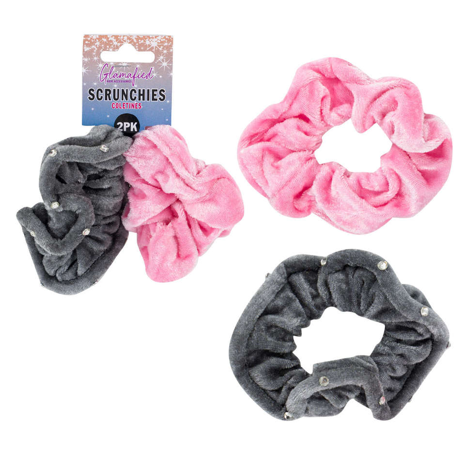 GLAMAFIED HAIR SCRUNCHIES - 3'' in LENGTH 2 PACK PINK and GRAY