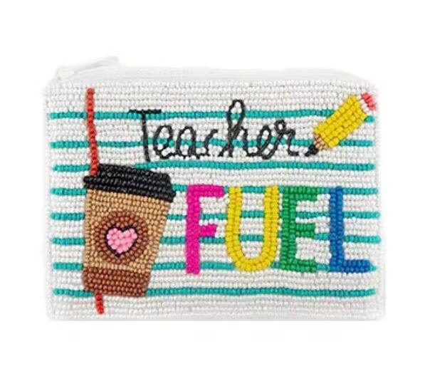 GLAS Find similar icon Handmade Beaded Coin Purse Small Square White Pouch with Pink Horseshoe Heart and Star Design Pouch