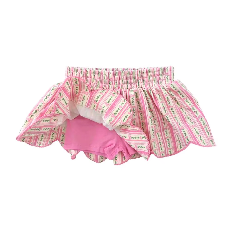 GLK0238 Custom Little girl Boutique pink flowers stripe skirt kids wholesale baby girl child summer sister skirt