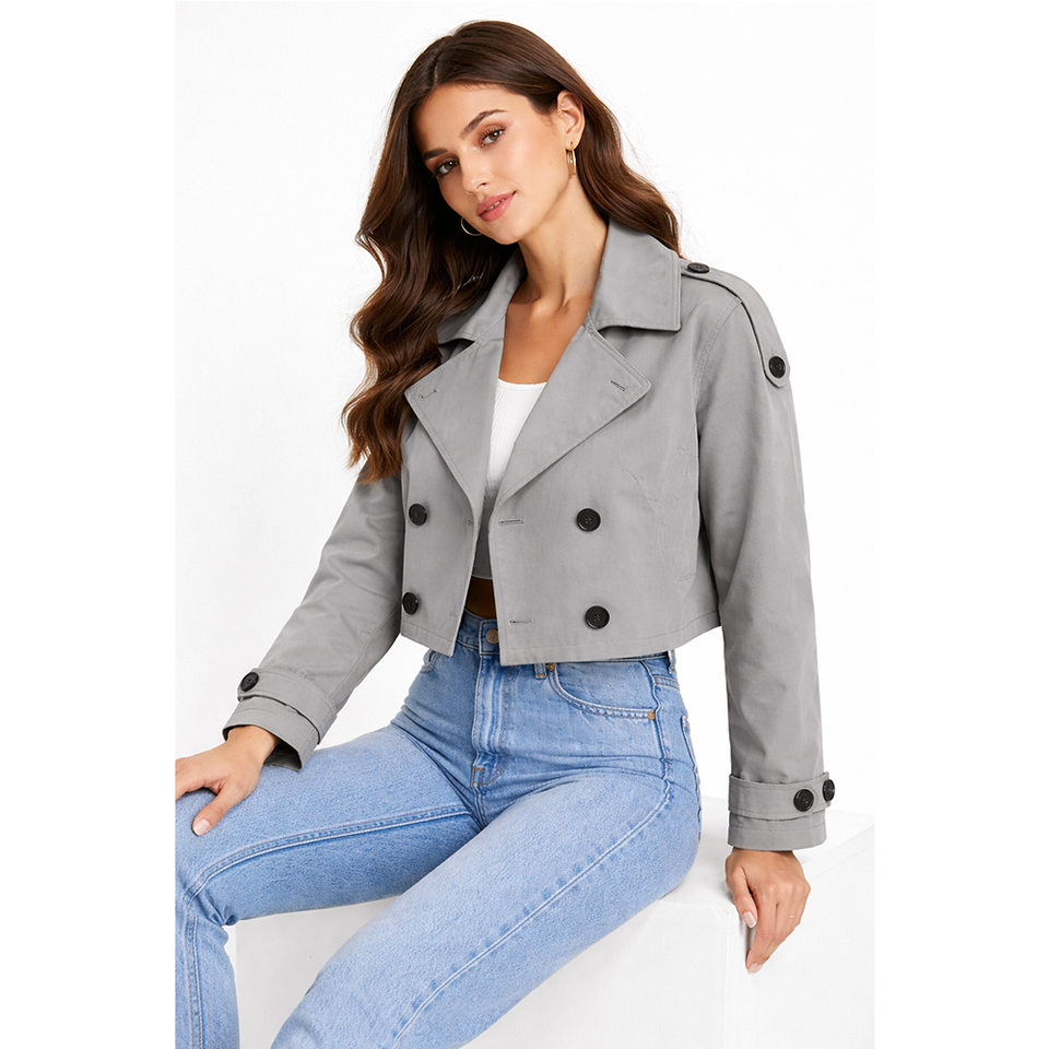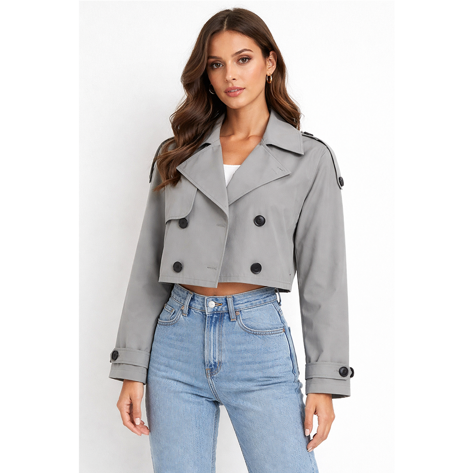 GLOVES City Hot Selling Arrival Winter Heavy Duty Fashion Women’s Cropped Trench Jacket Button Styles Coats for Womens