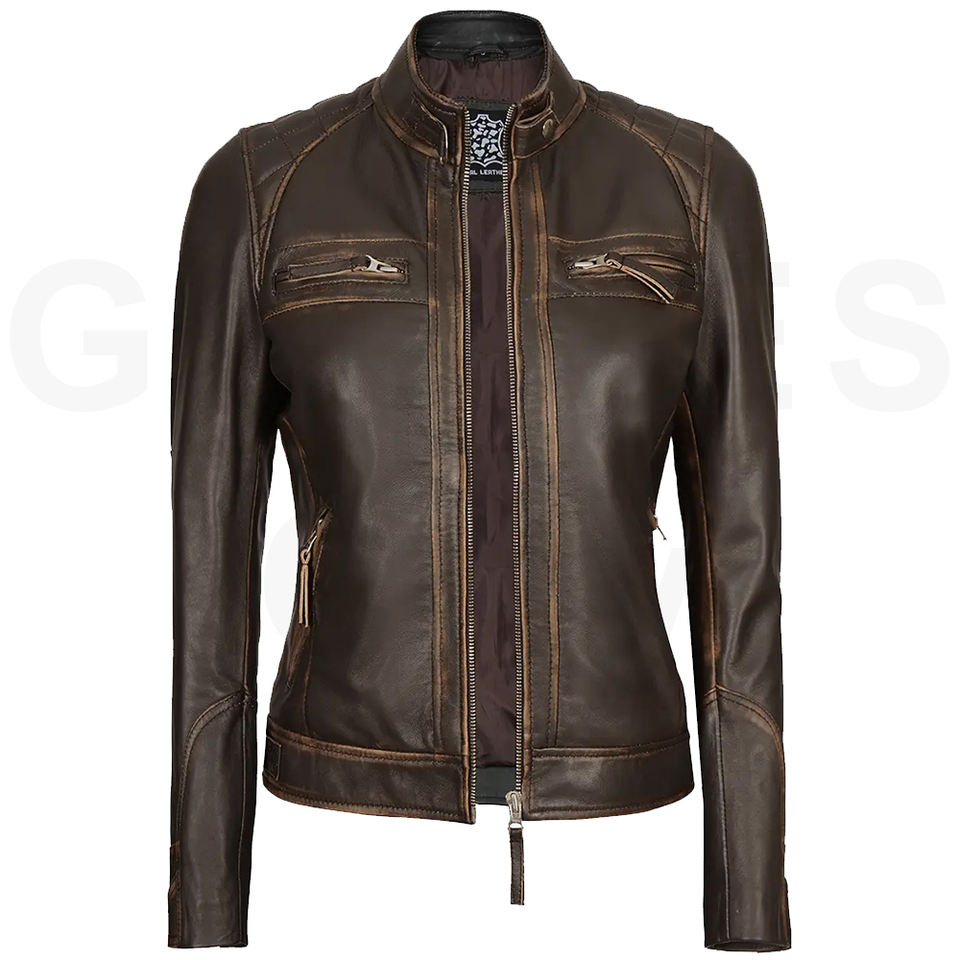 GLOVES City Women's Winter Genuine Cowhide Leather Jacket Solid Color Windproof Customizable Stylish