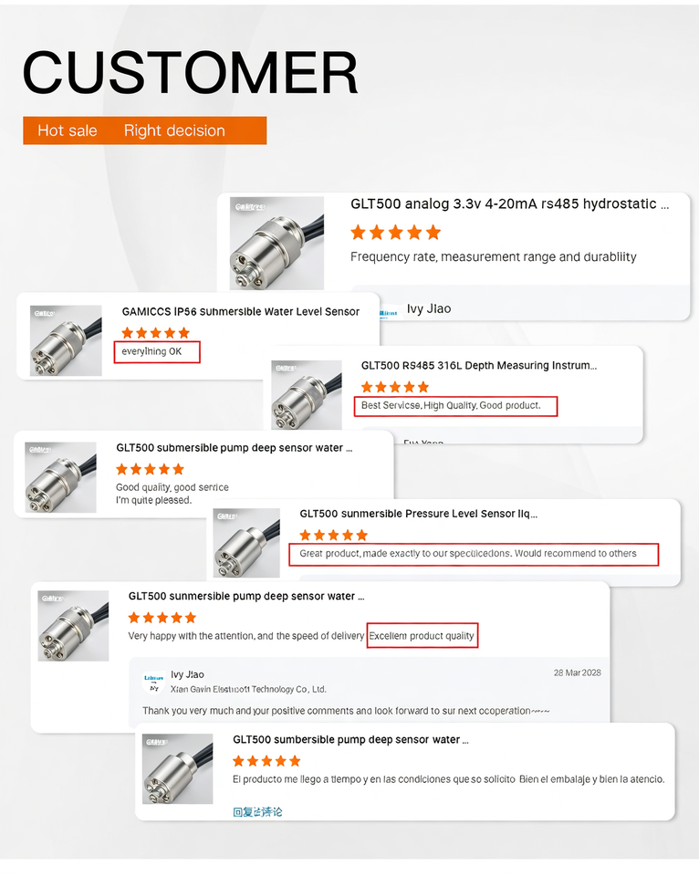 GLT500 High Quality 1m 2m 3m Hydrostatic Liquid Level Transmitter Water Tank Level Liquid Indicator Sensor