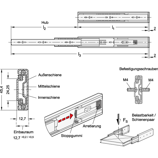 Drawer guide 50 cm 1.1 mm - Hardware accessories