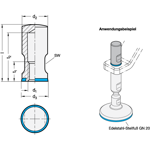 GN 20.1 Stainless Steel Cover Sleeves Hygienic Design Durable Product