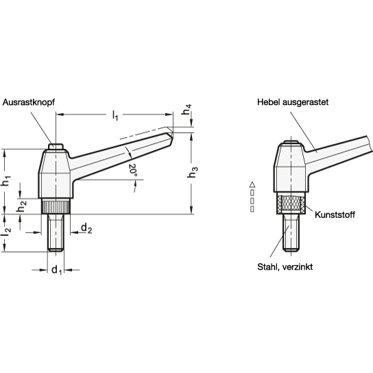 GN 503 Adjustable Clamping Lever with Release Button K Furniture Handles & Knobs