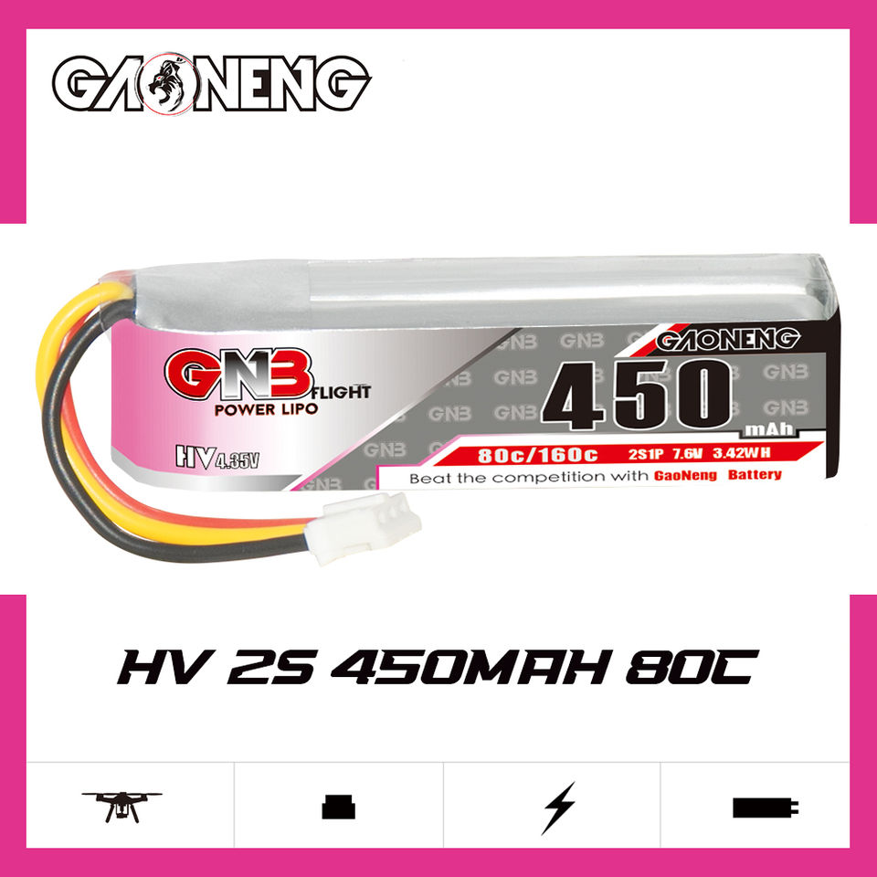 GNB GAONENG 2S 450mah HV 7.6V 80C PH2.0 3PIN LiPo Battery for RC Car 1:28 1/28 4WD Drift Onload Offload K969 K989 Wltoys Brushed