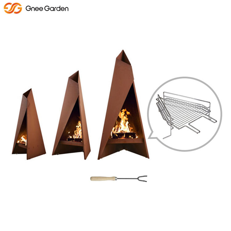 GNEE Corten Steel Freestanding Eco-Friendly Rustic Outdoor Fire Pit with Firewood Easy Install for Outdoor Gatherings