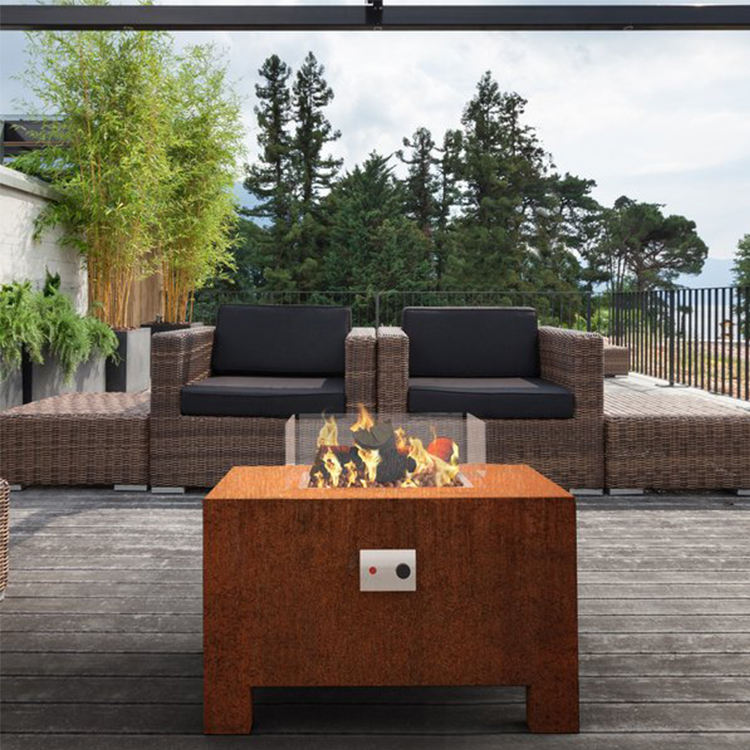 GNEE Living Room Interior Decor Modern Realistic Flame 4 Sided Cube Corten Steel Electric Fireplace For Outdoor Garden