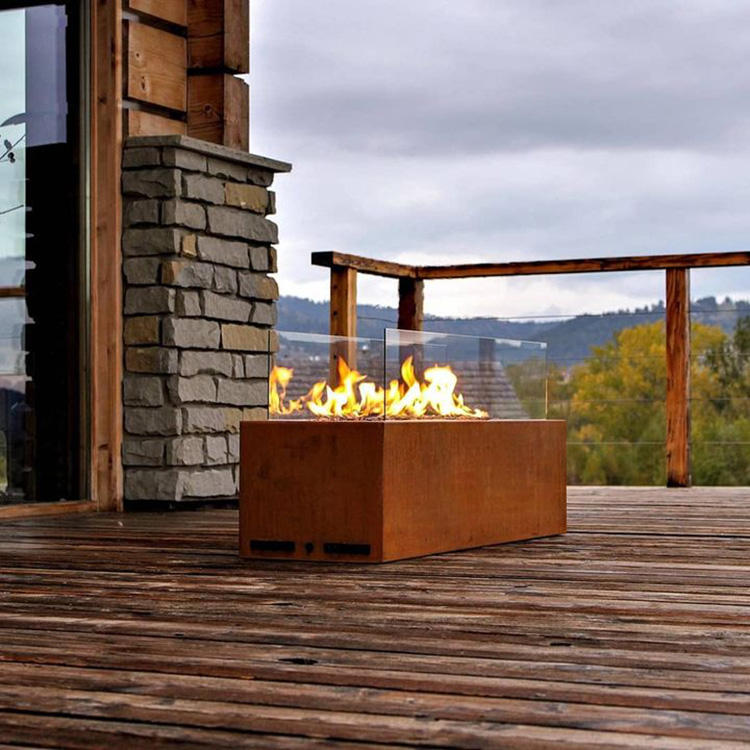 GNEE Modern Charcoal Garden Portable Outdoor Propane Gas Fireplace Bonfire Corten Steel Manual Ignition Adjustable Features for