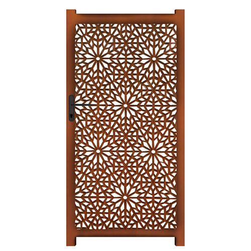GNEE Ornate Kaleidoscope Corten Steel Gate Laser-Cut Design for Privacy Fencing & Decor