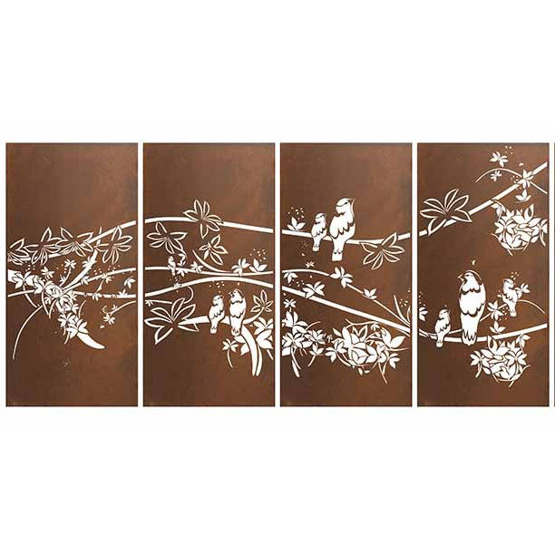 GNEE Rustic Bird Design Corten Folding Screens Outdoor Durable Steel Aluminium Coated Metal Hanging for Perfect Room Division