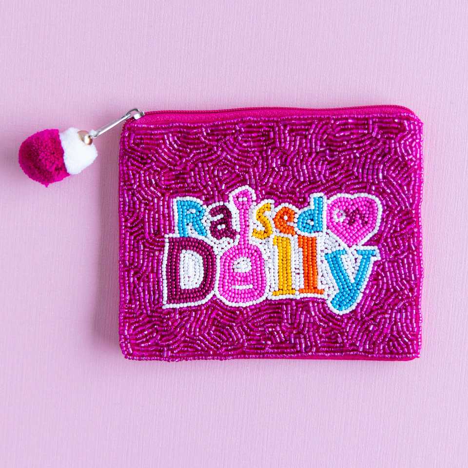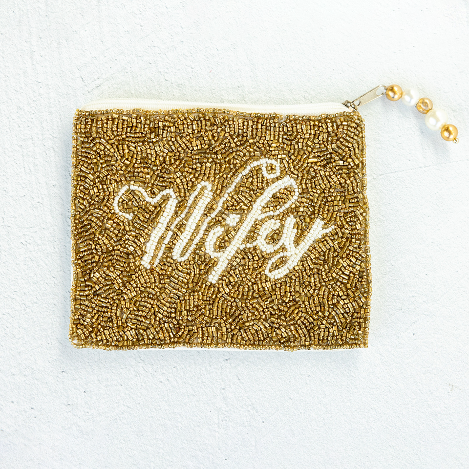 GO BERGEN Handmade Beaded Coin Purse - Crusaders Football Maroon & Gold Design | Bulk Wholesale Clutch OEM Custom Gift MOQ 50pcs