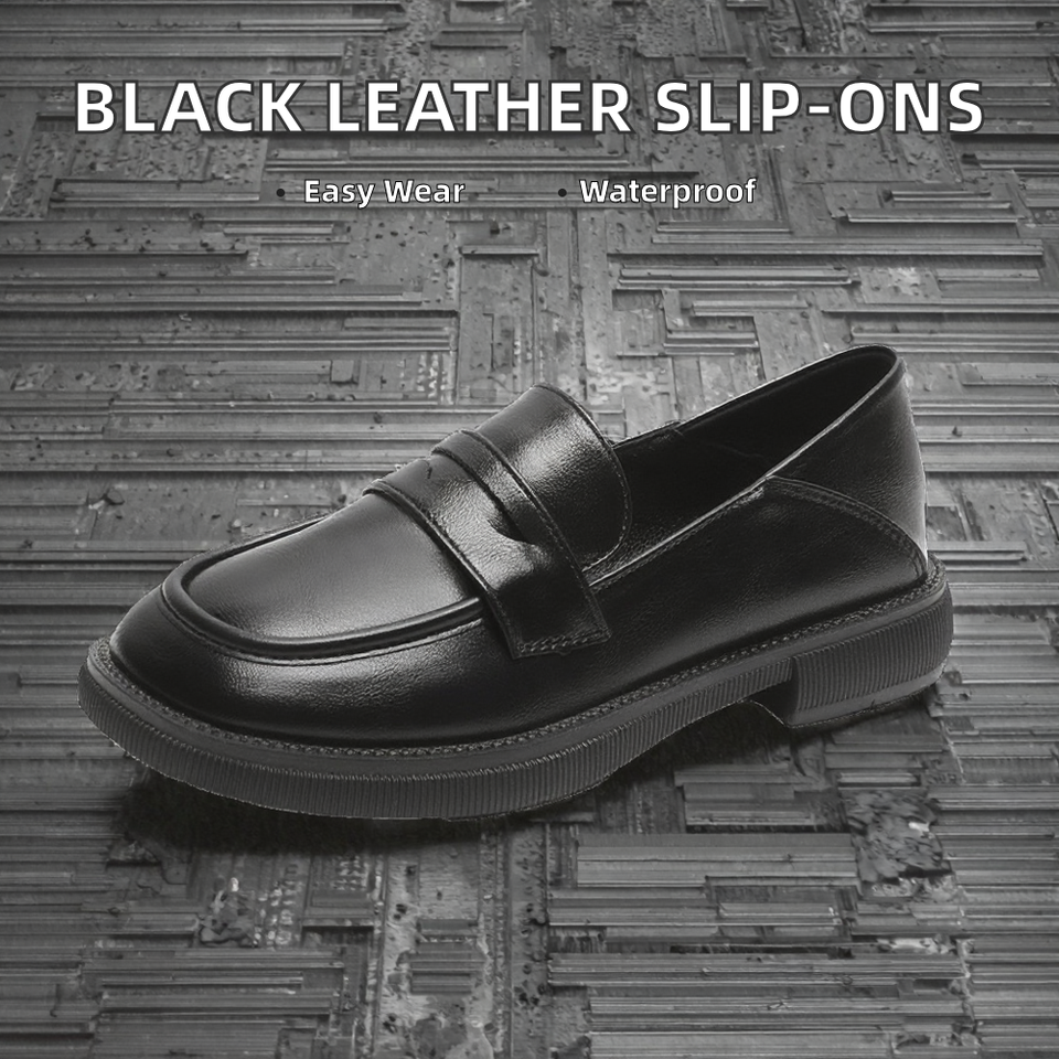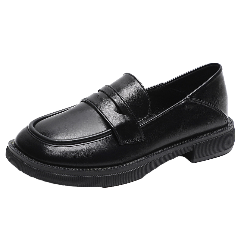 GON22 Women's High Quality Black PU Closed Toe Flat Shoes Fashion Design Slip-On Chunky Loafers Soft Comfortable Spring Summer