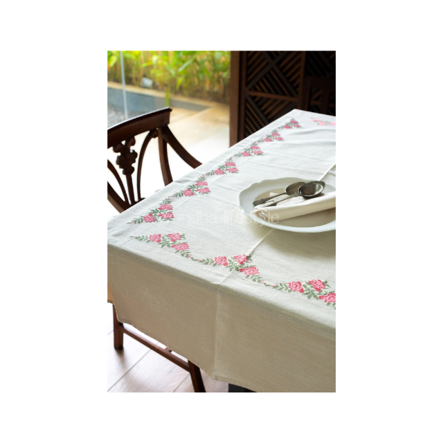 GOTS Certified 100% Cotton Embroidered Bohemian 60x90 Biodegradable Handmade India Sustainable Greenish Table Cloth OEM ODM Bulk