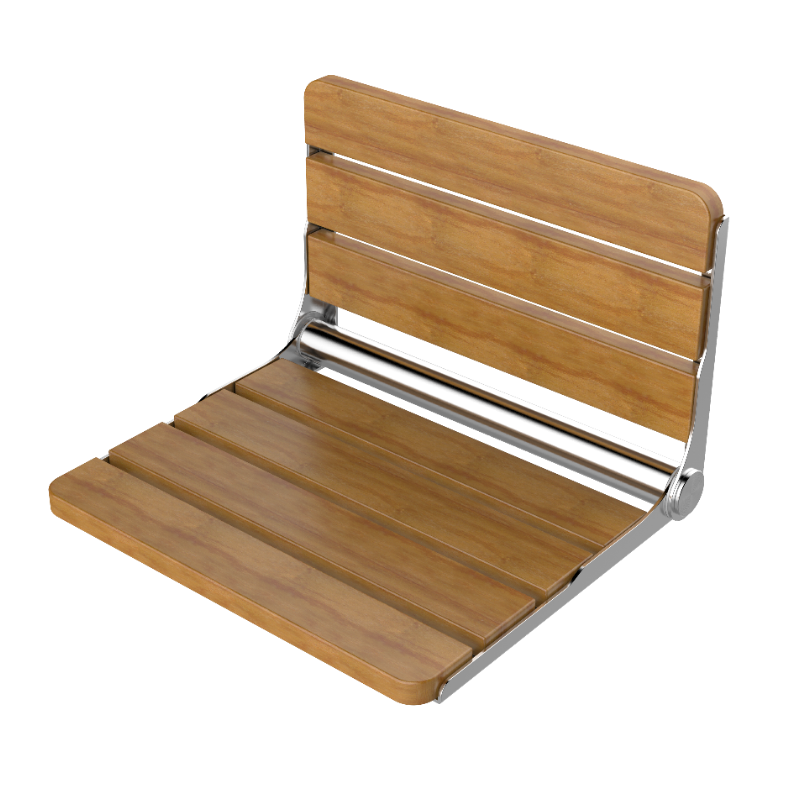 GQK 2024 Hot Sale Safety Bathroom Wood Foldable Shower Stool Stainless Steel Wall Mounted Bath Chair