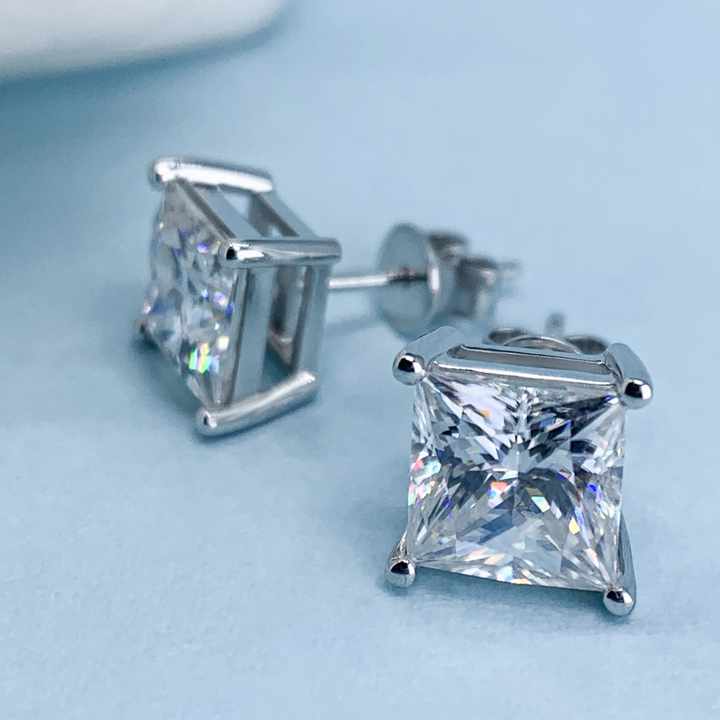IGI Certified 925 Sterling Silver Stud Earrings Custom Princess Cut Lab Grown Diamond Hip Hop Moissanite Earrings for Women Men