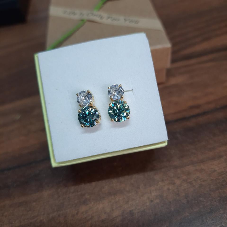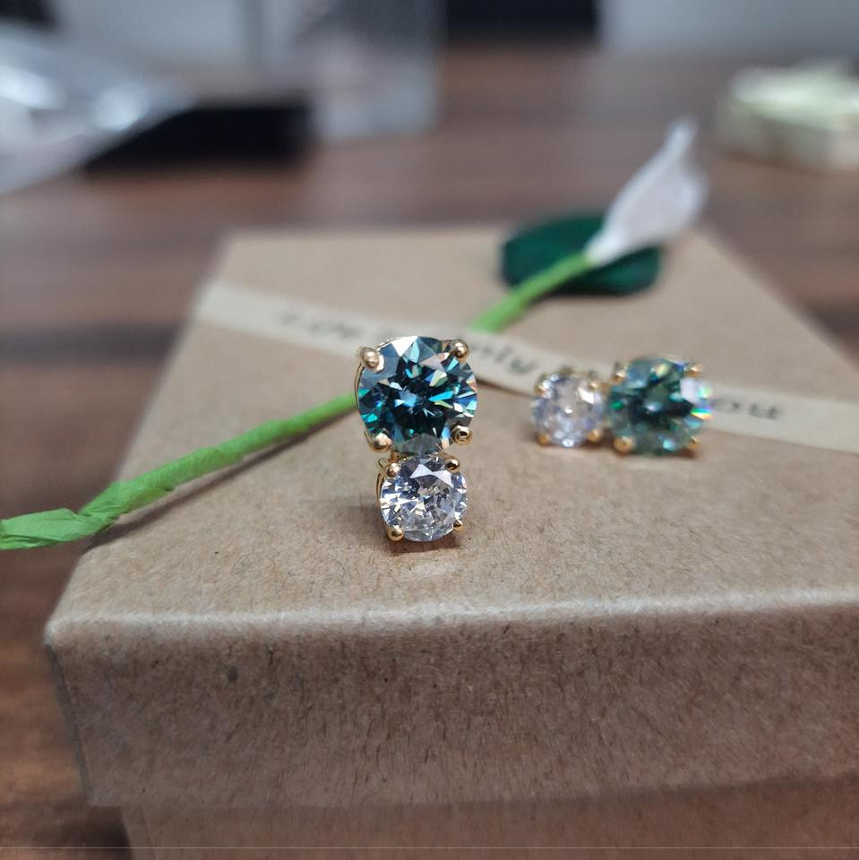 GRA Certified Round Cut Blue Green Color Moissanite Studs In Gold Plated 925 Silver Minimalist Fashion Earrings At Low Price