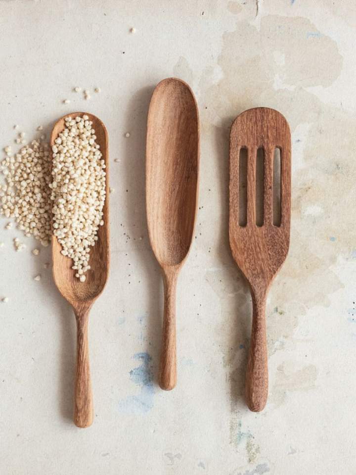 GREAT Natural Teak Or Acacia Wooden Kitchen Utensils Set With Spoon Rest Wooden Cooking Spoons Set and Utensils Holder