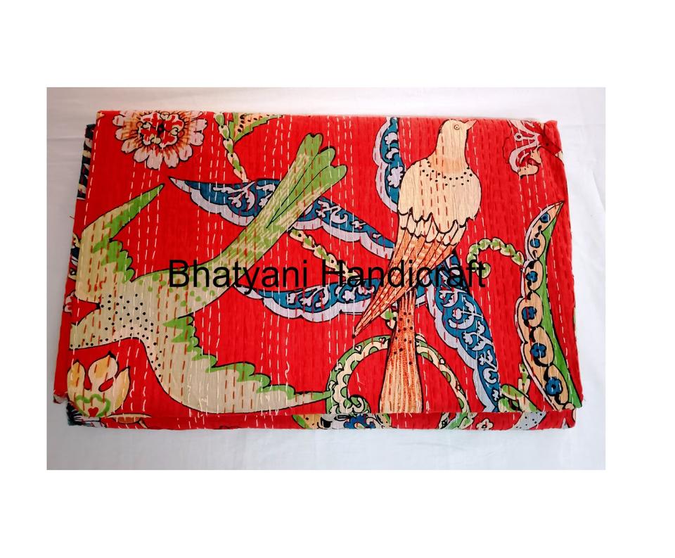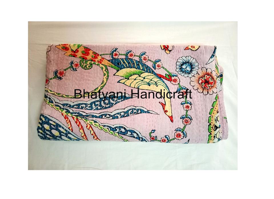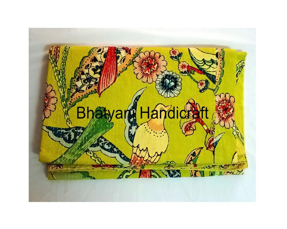 GREEN Big Bird Kantha Quilt Cotton Kantha Blanket Bohemian Bedspread Home Decor Reversible Quilt Sofa Coverlet
