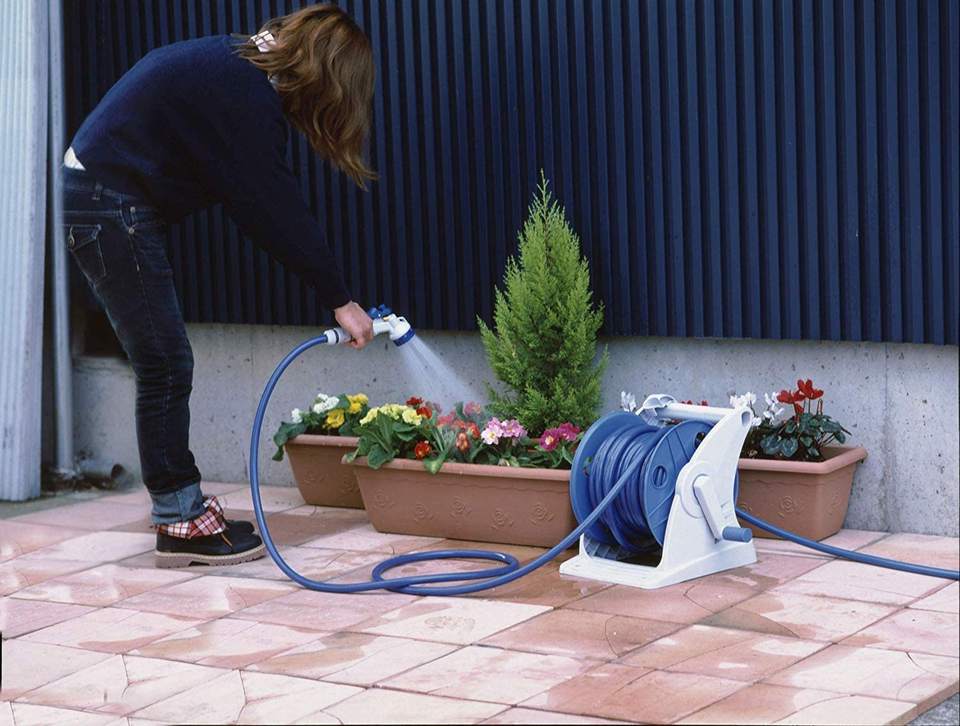 GREEN LIFE JAPAN Genius Series Hose Reel Set up to 50 Meters Length Portable Home Gardening Water Hose Reel Trigger Sprayers