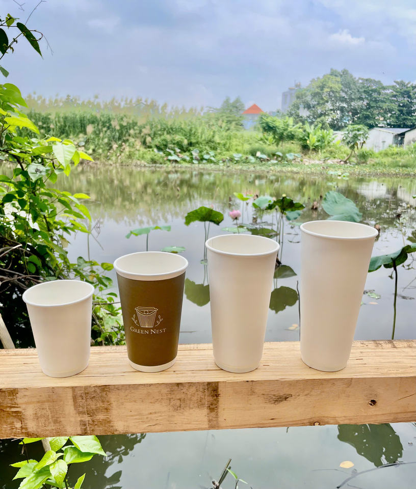GREEN NEST Custom Logo Printed PE Coated Disposable Single Wall Paper Cups Flexographic Printing for Cafe Takeaway Beverages