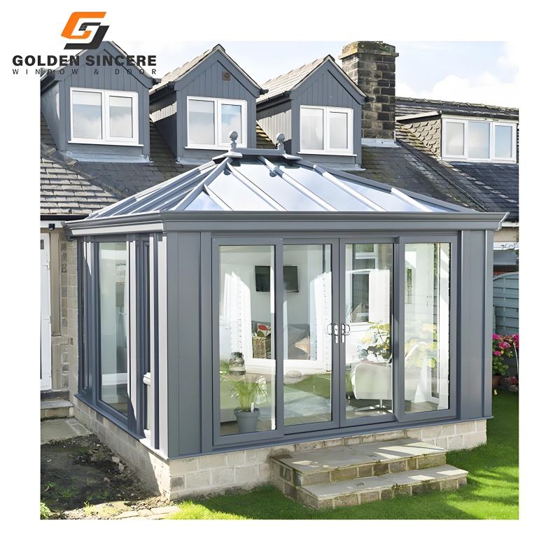 GS Large Span Tempered Glass Room with Folding Doors for Open-Air Garden Experience
