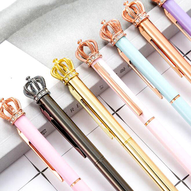 New Design Crystal Beautiful Lady King Queen Metal Pen Crown Ball Pen