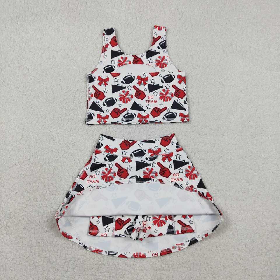 GSD2693 rts Little active girl red go team football bows skirt outfits kids girl yoga child Athletic Sleeveless set