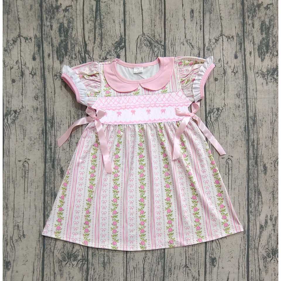SUTUTU-2 GSD2717 Casual Girls Dress Pink Bow Smocked O-Neck Winter Made of Milk Silk Preorder Sizes 3-8 Years 250g