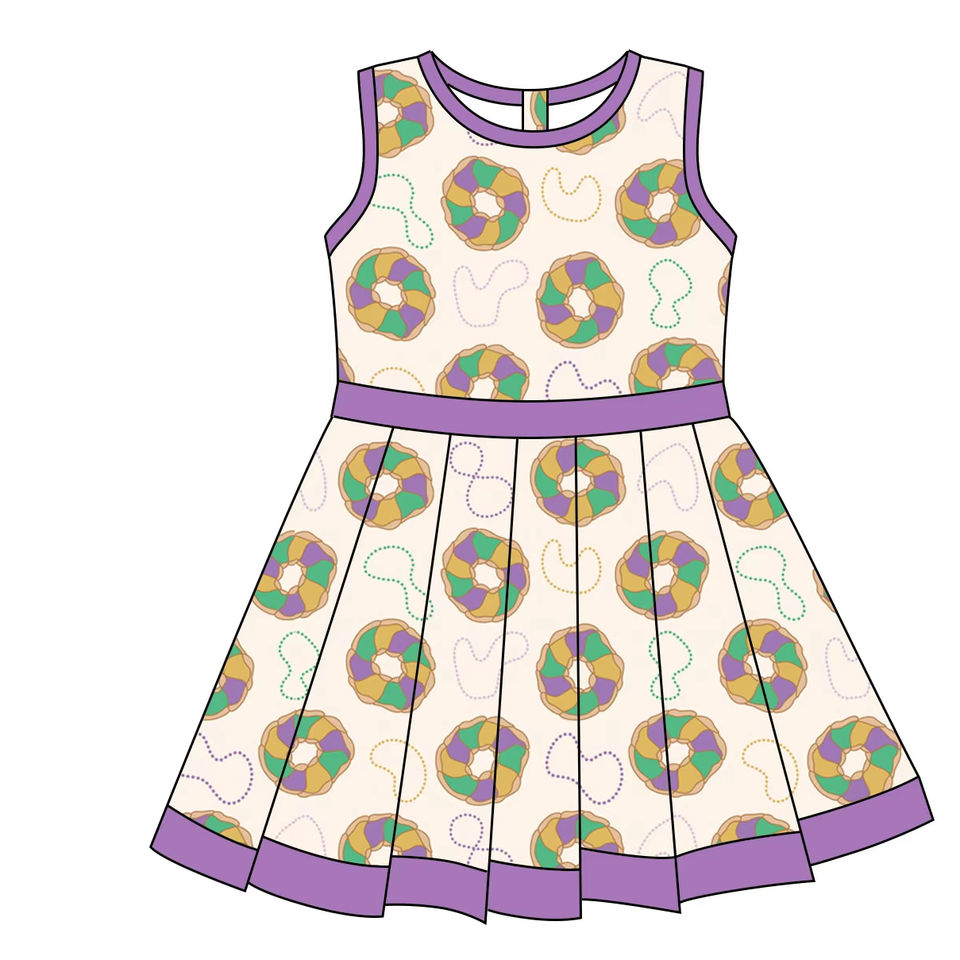 GSD2867 rts Little girl Boutiques purple green yellow doughnut dress kid wholesale baby girl dress child dress