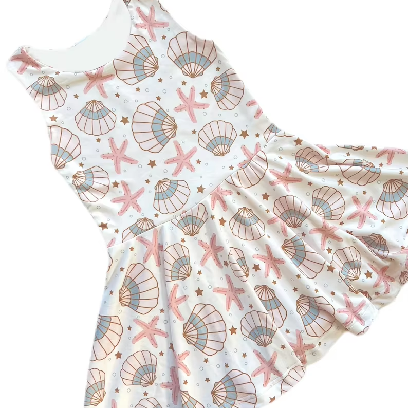 GSD2956 Custom Baby Girl Summer Knee-Length sea shell Print sleeveless Dress Wholesale dress