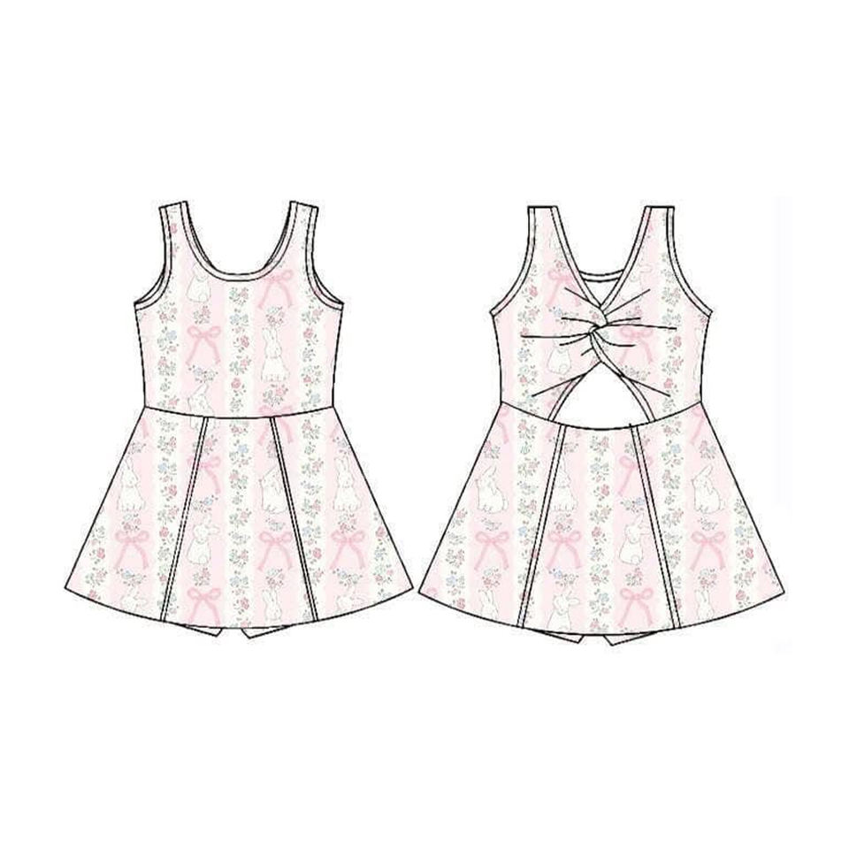 GSD3517 Custom Baby Girl Summer pink flowers bows print sleeveless Dress Wholesale yoga dress