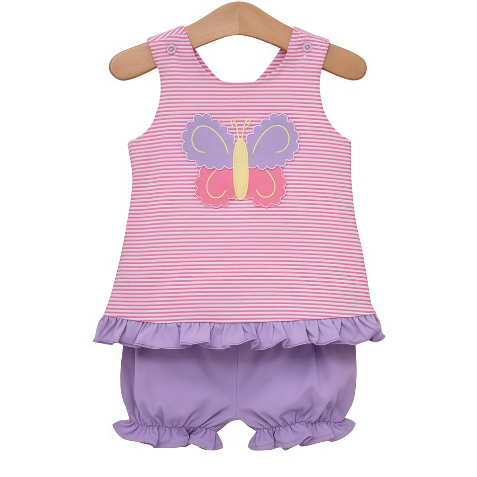 GSD3559 Custom Baby Girl Summer Pink purple butterfly print Knee-Length Stripe Easter Sleeveless Dress Wholesale