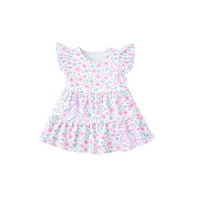 GSD3572 Custom Baby Girl Summer purple blue Flowers Print flying Sleeve Knee-Length Breathable Dress Wholesale