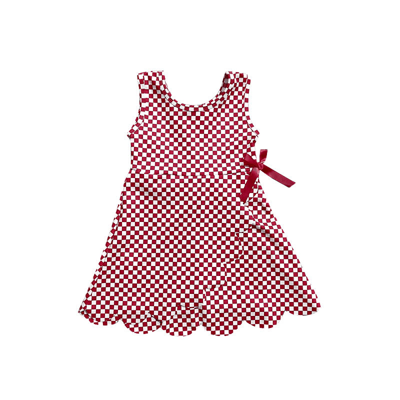 GSD3669 Custom Baby Girl Summer red plaid print sleeveless Dress Wholesale dress