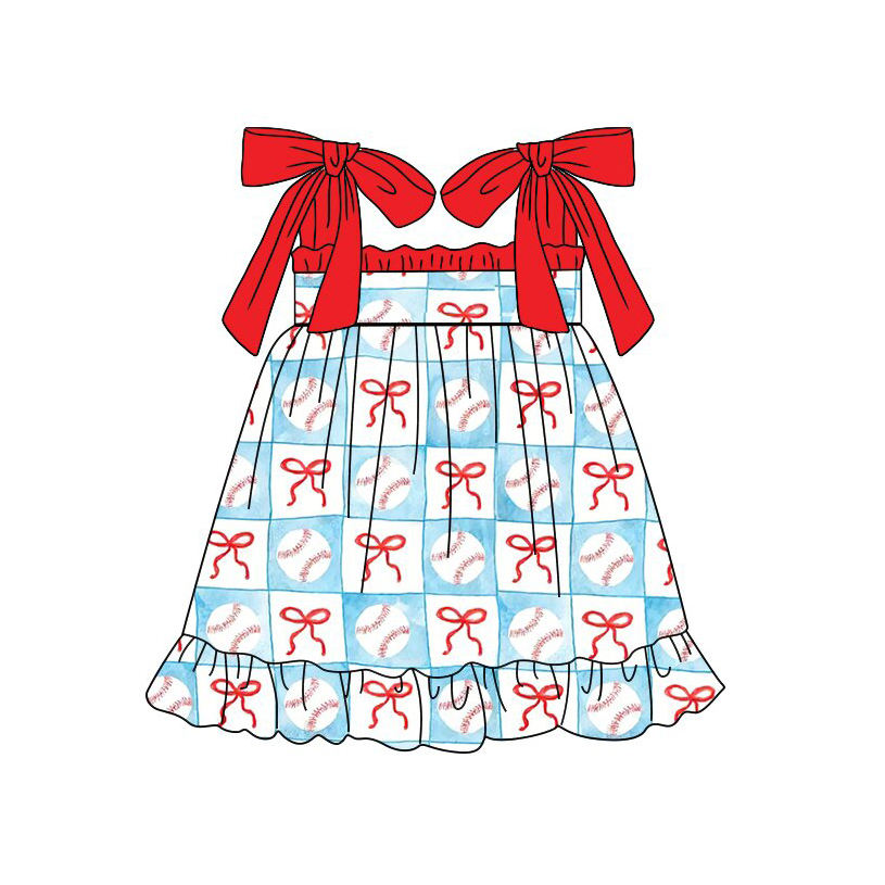 GSD3727 Custom Little active girl Blue bows print skirt outfits kids wholesale girl child summer sleeveless set