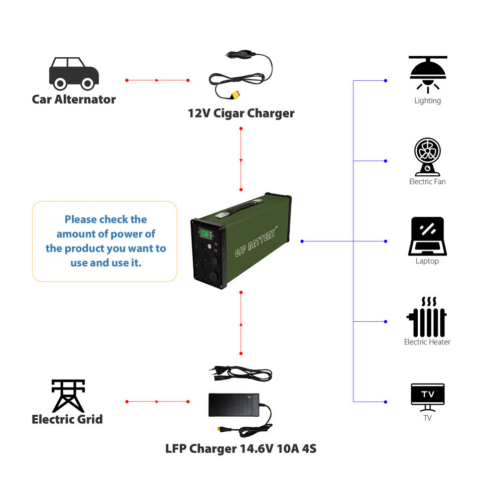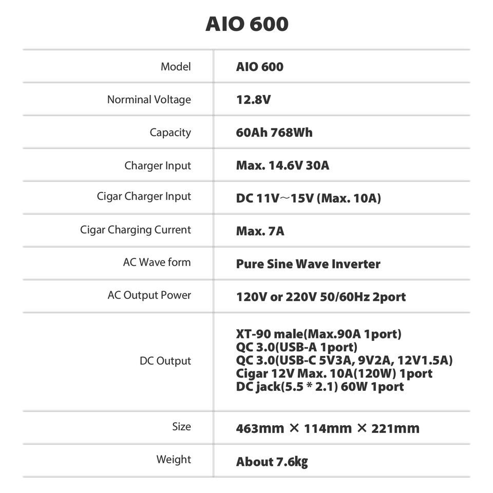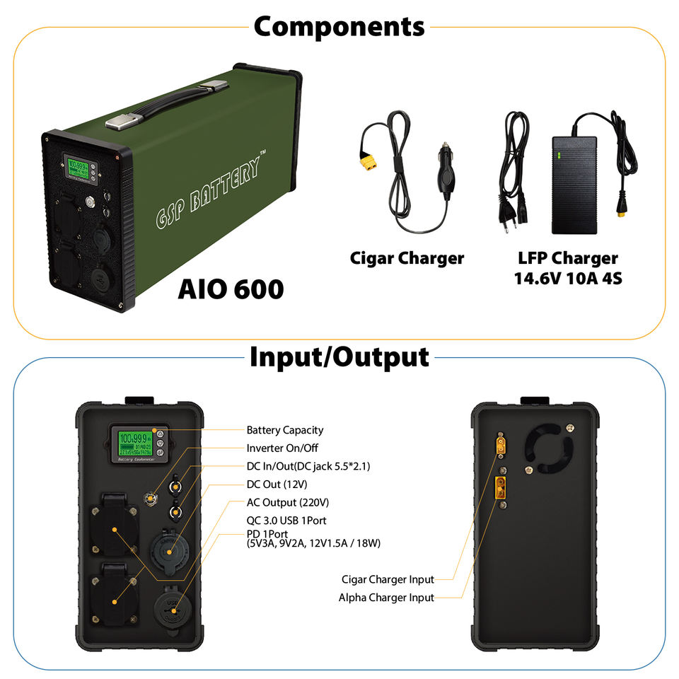 GSP Battery Power Station AIO 600, 12.8V, 60Ah 768Wh, All in One Power Bank for Camping, RV, Caravan, Off-grid Applications
