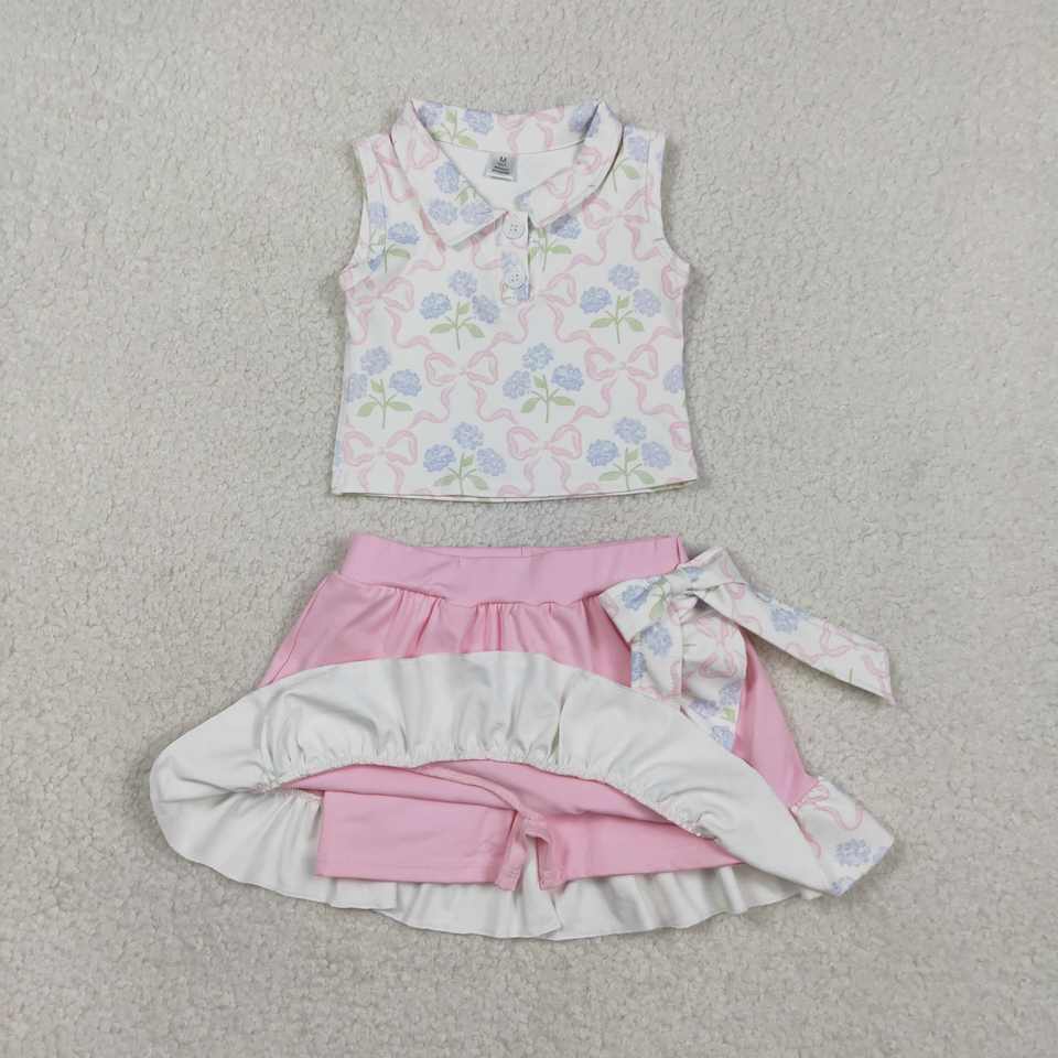 GSSO3018 RTS Little Active Girl Pink polka cross lamp Print Outfits Kids Wholesale short Sleeve Set Girl Child