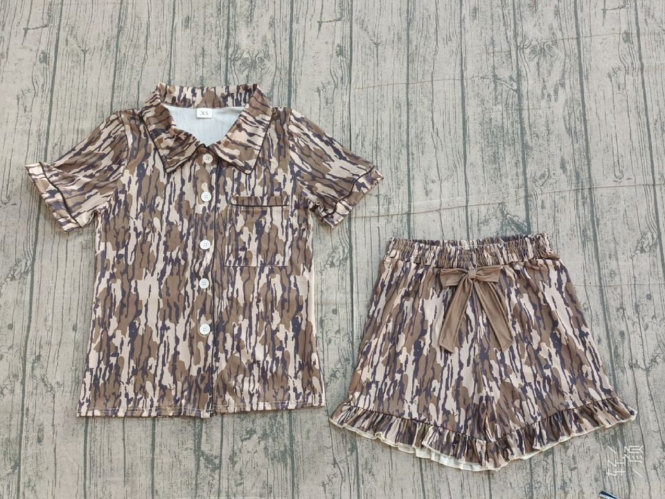 GSSO3109 CUSTOM Little Active Girl Green stripe beach ball Print summer Outfits Kids Wholesale short Sleeve Set Child