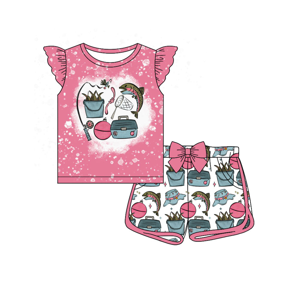 GSSO3156 CUSTOM Little Active Casual Girl Red apple flowers Print Outfits Kids Wholesale Short Sleeve Set Child