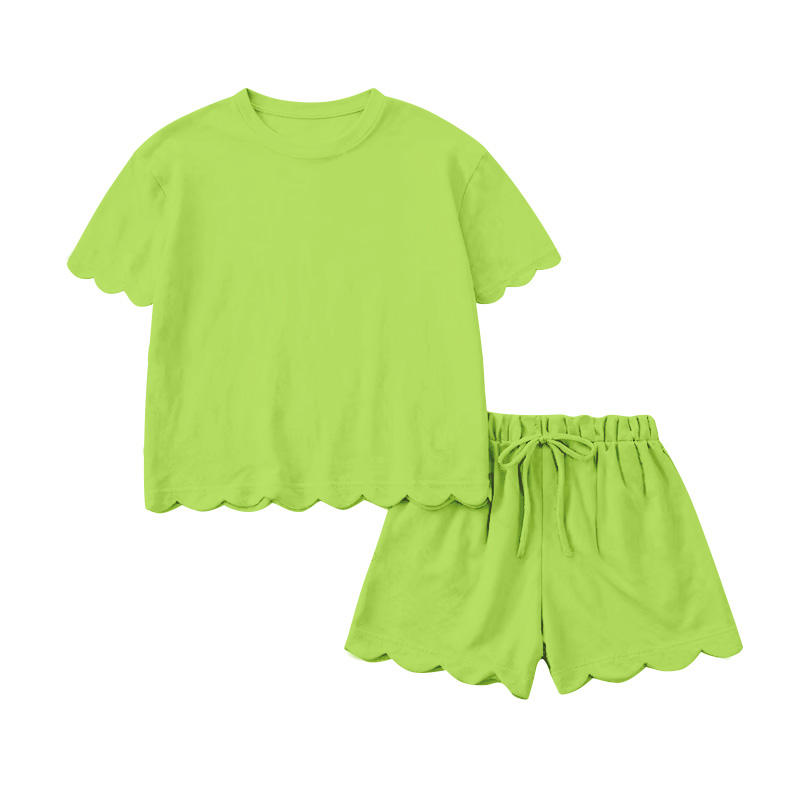 GSSO3178 Custom Wholesale Little Girl orange solid Print summer cotton Outfits short Sleeve Child Clothing Set