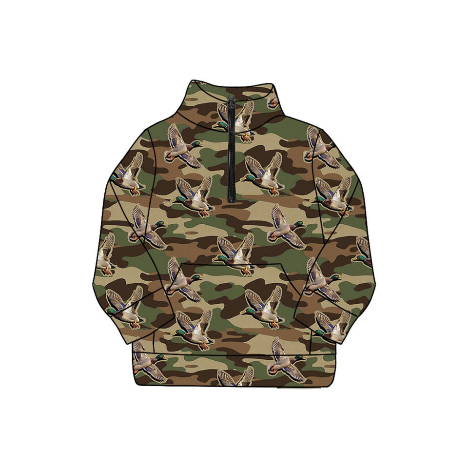 GT1185 Custom top baby girl adorable Boutique Green camo duck Yoga top kids toddler coat winter design child clothing zipper set