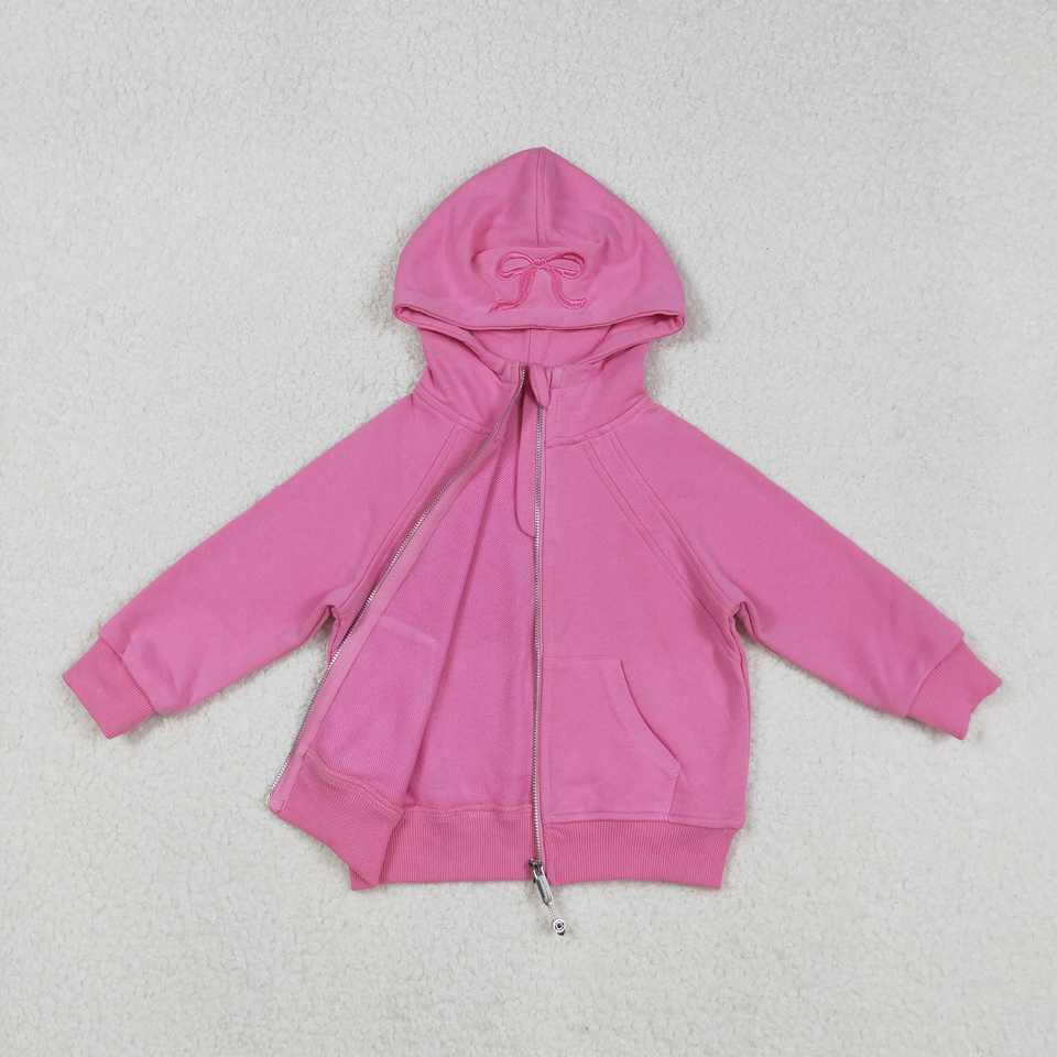 GT1201 RTS top baby girl adorable Boutique Pink solid hoodies top kids toddler coat winter design child clothing zipper set