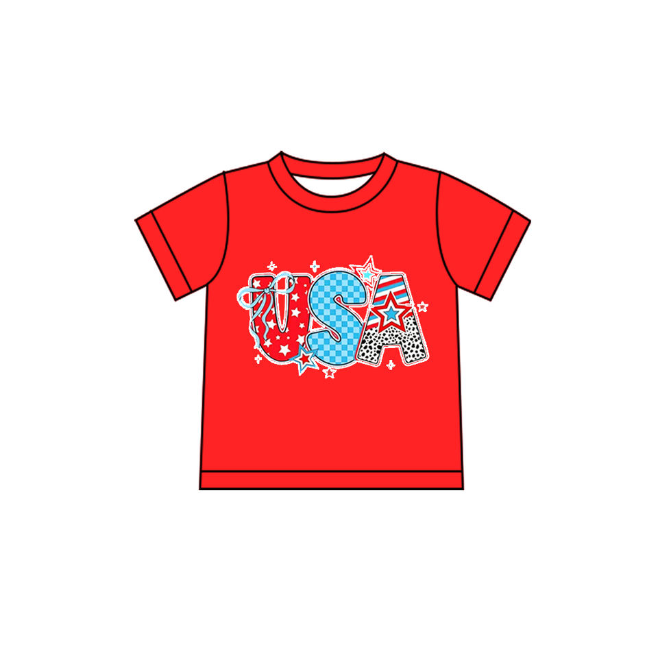 GT1595 RTS top baby girl adorable Boutique white 4th of july USA print top kids toddler child clothing