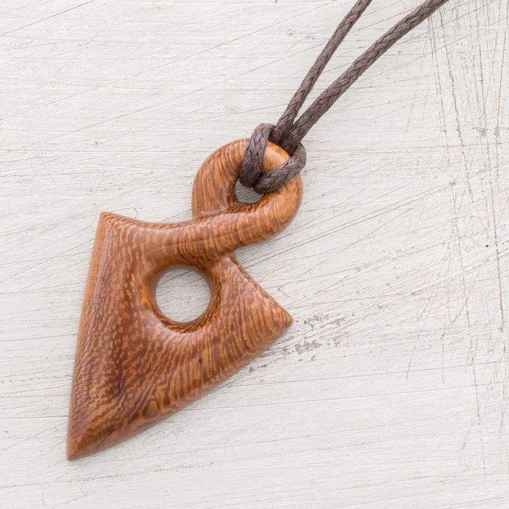GUIDE FOR WOMEN MEN NATURAL LARGE BOHO TRIBAL SONO WOODEN Pendant on Adjustable Cord Handmade Necklace