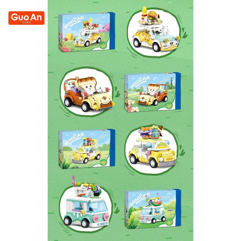GUOAN TOYS City Outing Bus Burger Ice Cream Candy Flower Fruit Van Camping Food Car Model Building Blocks Bricks Toys for Girls