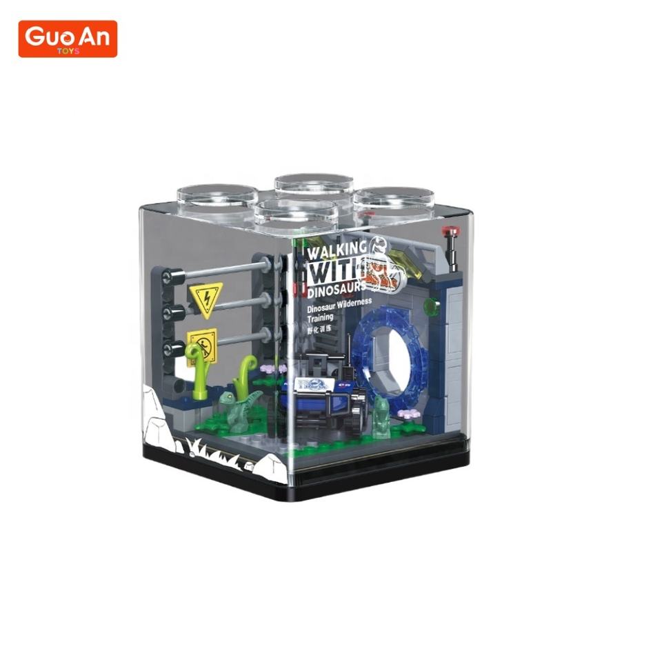GUOAN TOYS Educational Building Block Sets Kids Assembly Dinosaur Plastic Blocks Dust-proof Display Box Construction Toy