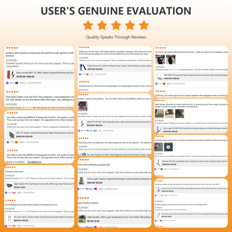 Inflatable, Lightweight, Durable, Carbon Fiber, Reinforced Edge, High-Torque, Low Drag, High Speed, Corrosion-Resistant, Saltwater-Proof, Detachable, Stable Gliding, Sharp Turning, Textured Grip, Wave Riding, Freeride, Competition